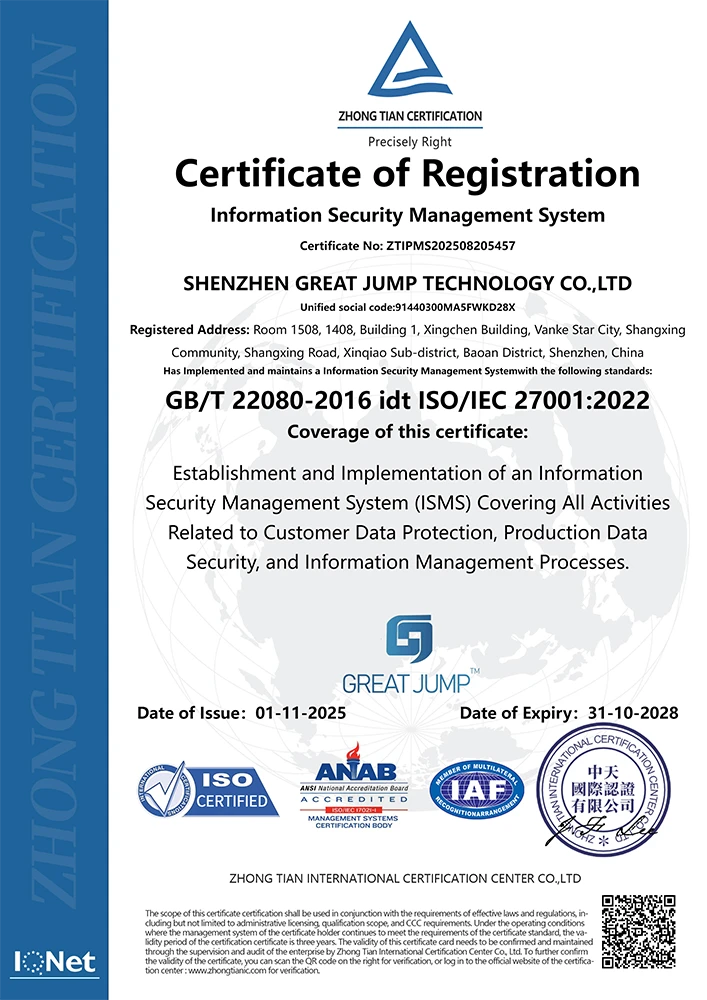 Beyond certification, our quality engineering team continuously improves our production processes, management systems, and data transmissions to meet the highest standards.