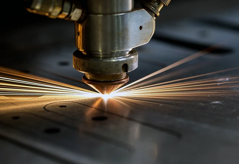 Laser cutting is a subtractive manufacturing process that uses a high-powered and focused laser beam to create precise cuts in sheet metal materials.