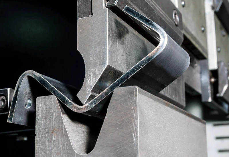 Press brake forming uses a matching punch and die set and the application of force along a straight axis, producing linear bends on metal sheets.